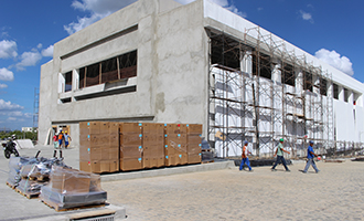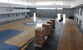 A Arena Facisa recebeu nesta segunda-feira, 06, as peças da arquibancada retrátil para a quadra poliesportiva, que terá capacidade para até 900 pessoas e será a primeira da Paraíba com piso olímpico.
